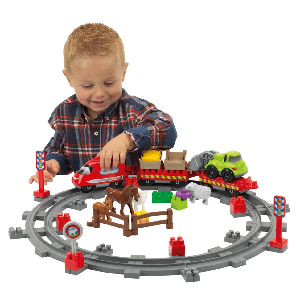 Met deze Abrick goederentrein komt het eten op tijd bij de boerderijdieren terecht! De set wordt geleverd met o.a. een koe, twee paarden, een schaap, een tractor, verkeersborden en uiteraard voer voor de dieren. Deze Ecoiffier Abrick set is een geweldige manier om de kleintjes te stimuleren creatief te zijn.