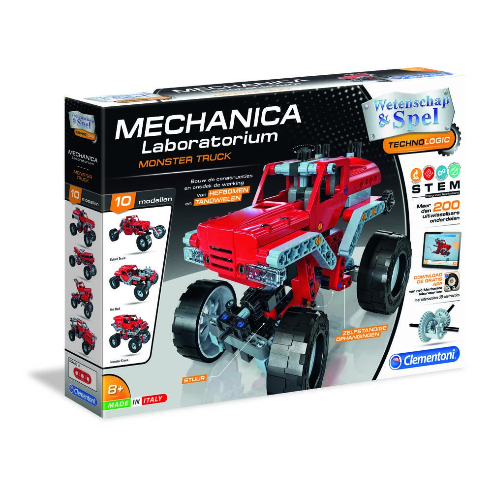 Dit ongelofelijke technologische laboratorium van Clementoni brengt je dichterbij de wereld van de mechanica en techniek door het bouwen van een krachtige monstertruck. Deze set bevat ruim 200 onderdelen om inelkaar te zetten waaronder differentieel, stuurinrichting met beugel en rondsel en kruiskoppeling. Met deze te gekke set ontdek en bouw je tien fantastische, dynamische modellen! Je vindt er bovendien een geïllustreerde handleiding die je stap-voor-stap begeleidt bij het bouwen van de tien modellen.