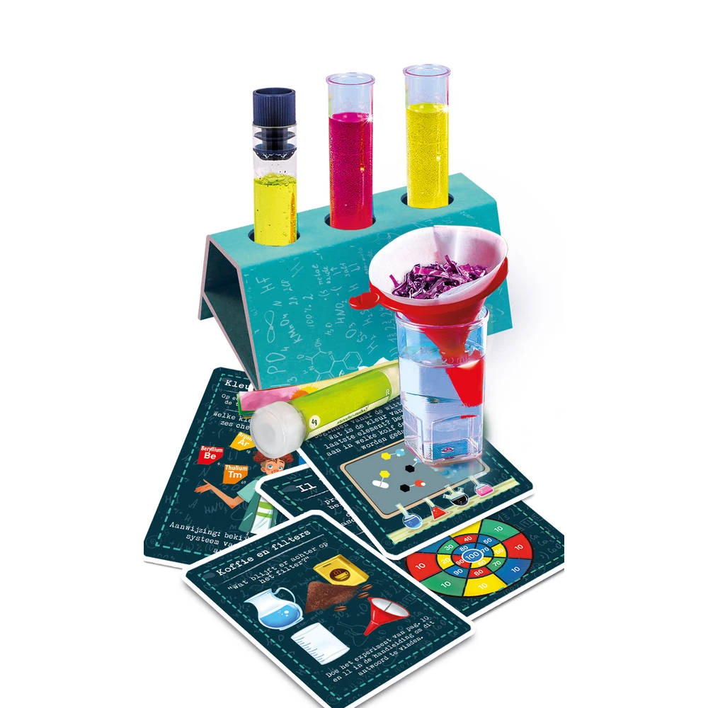- Deze set bevat allerlei scheikundige accessoires zoals lakmoespapier, een kleine trechter, filters en nog veel meer.