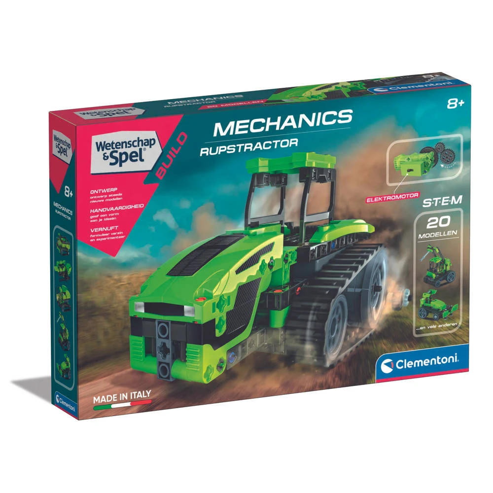 Met deze sensationele Clementoni rupstractor bouwset bouw je een rupstractor die wordt aangedreven door een elektromotor en kun je je passie voor mechanica cultiveren. De set bevat meer dan 200 onderdelen om 20 modellen en technische toepassingen te bouwen. De tractor heeft ook een landbouwwerktuig dat wordt aangedreven door de motor via een mechanisch transmissiesysteem. Tot de onderdelen van de set behoren tandwielen, rupsen, een transmissiemodule, panelen en een elektrische motor om alle modellen te bouwen, uit elkaar te halen en weer opnieuw te bouwen. Een spel dat bedoeld is om de wereld van STEM (wetenschap, technologie, techniek en wiskunde) op een gemakkelijke, leuke manier te leren kennen. Volg de instructies op uit de geïllustreerde handleiding die vol staat met technische en wetenschappelijke inzichten, of download de gratis APP met interactieve 3D-instructies voor alle modellen.
