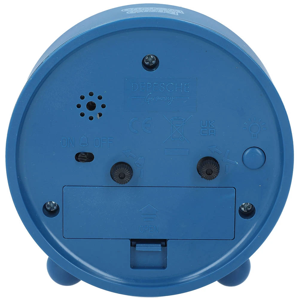 - De wekker is in de kleur blauw