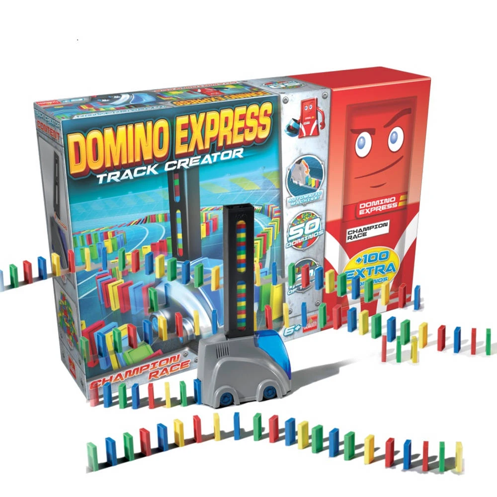 Met dit Domino Express Track Creator kun je snel en gemakkelijk aan de slag met het bouwen van de gaafste dominotracks. De set wordt geleverd met 50 kleurrijke domino’s en een automatische machine waardoor ze nog sneller gestapeld worden! Ook fijn, je krijgt zelfs 100 extra domino’s zodat je nog gavere en grotere banen kunt bouwen!