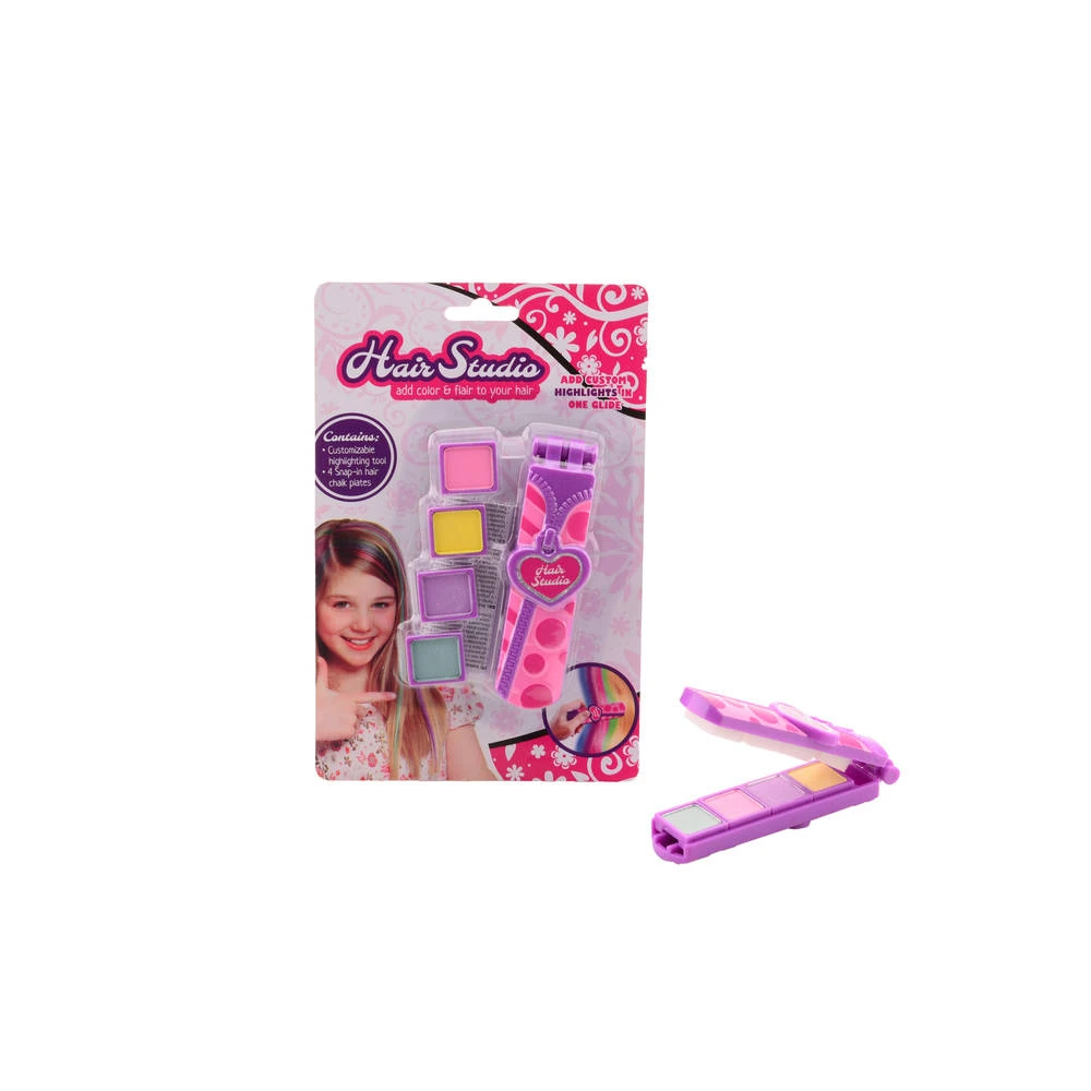 - De set bevat vier verschillende kleuren haarkrijt, de highlighting-tool en instructies.