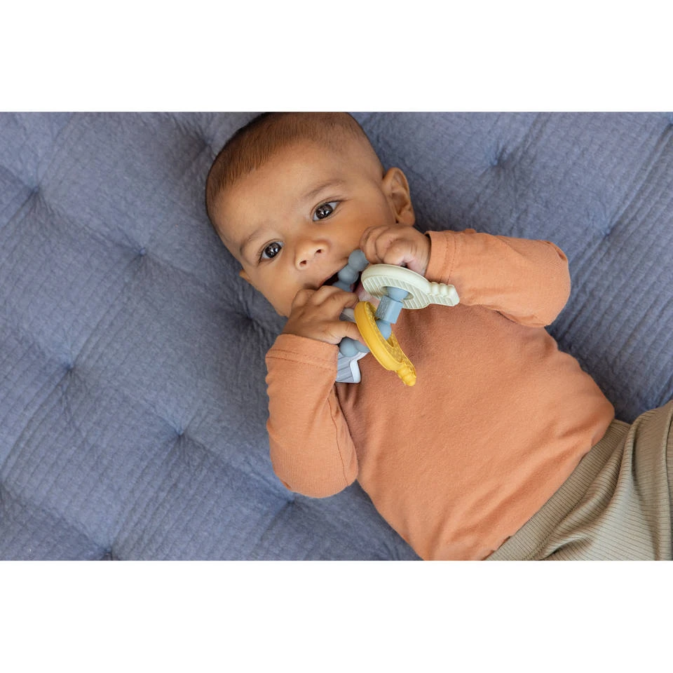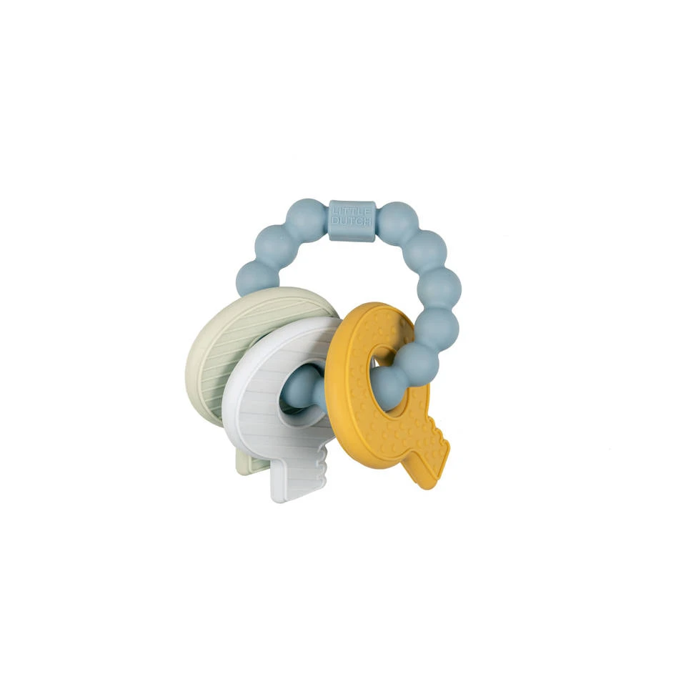 De komst van de eerste tandjes is een mijlpaal voor jouw baby, maar niet altijd even prettig! Om de pijn te verlichten heeft Little Dutch een multifunctionele bijtring ontworpen in de vorm van een sleutelbos. Het is een speeltje maar biedt ook troost en helpt de nieuwe tandjes door te komen.