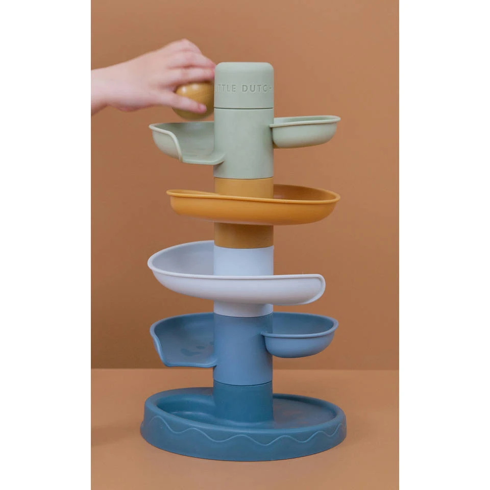 Laat de bal maar rollen! De spiraaltoren van Little Dutch zorgt voor eindeloos veel speelplezier. Deze kleurrijke set bestaat uit 5 subtiel gekleurde delen die jouw kleintje gemakkelijk op elkaar stapelt. Laat de ballen een voor een op de bovenste laag vallen en kijk hoe ze achter elkaar naar beneden rollen en slingeren.