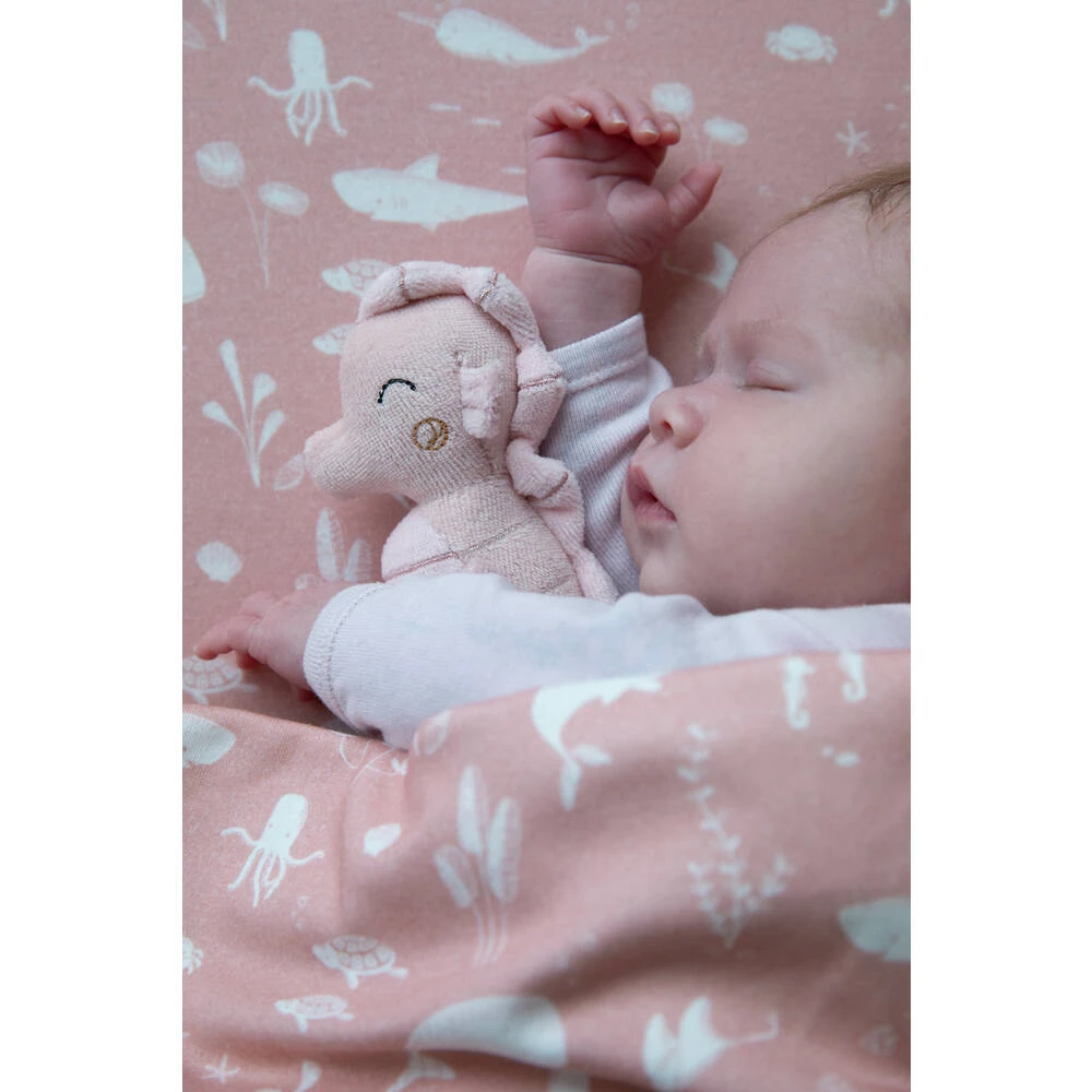 Deze roze Little Dutch rammelaar in de vorm van een zeepaardje is favoriet bij de baby’s. Het kindje hoort een geluidje wanneer de rammelaar beweegt.
