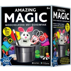 Altijd al een echte goochelaar willen zijn? Met deze goochelhoed kan dat. Volg stap voor stap het instructieboekje om zelf geweldige trucs te halen. Je kunt zelfs het konijn uit de goochelhoed toveren! Leer kaarttrucs, trucs met touw, ringen, bekers en meer. Met de 200 trucjes kun je het publiek prima vermaken.