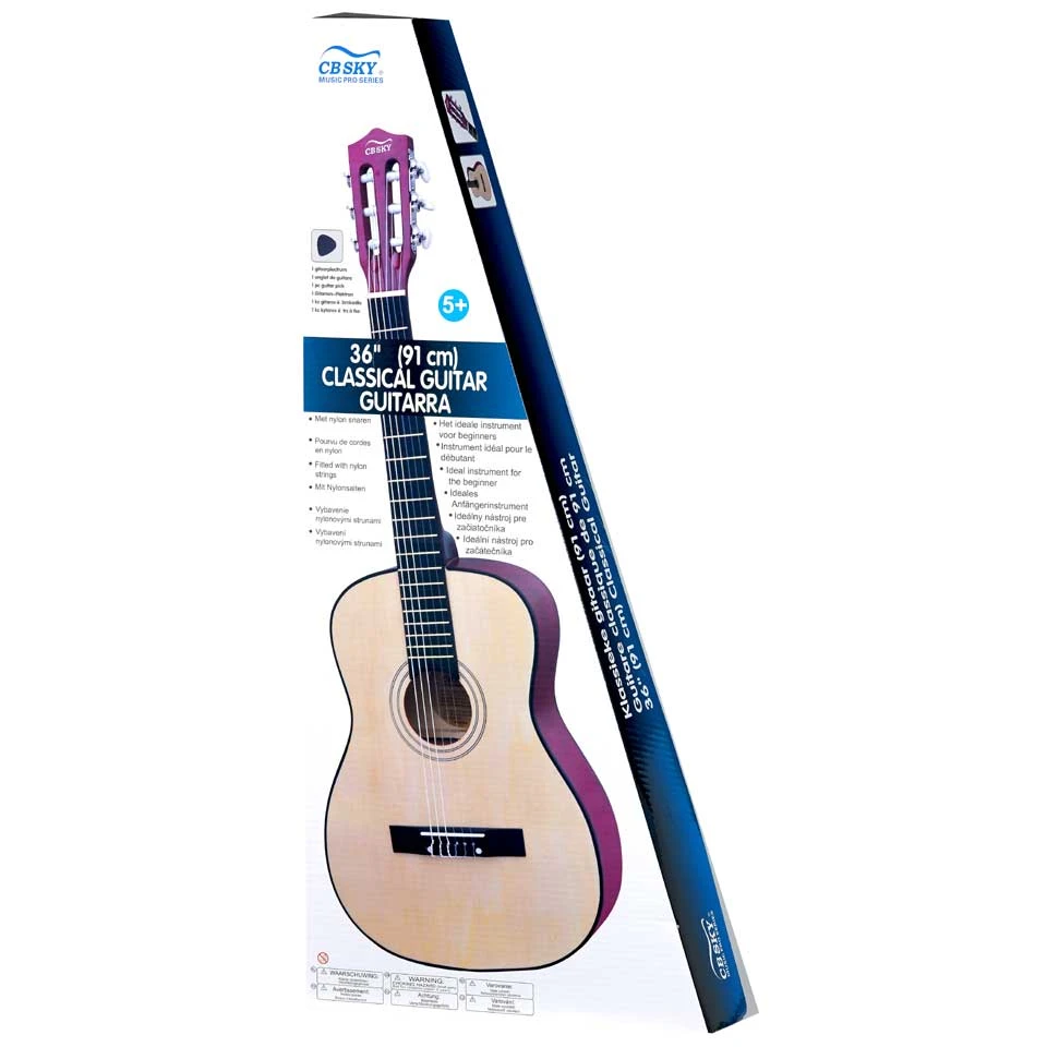 Leer gitaar spelen met deze houten speelgoed gitaar! Dit klassieke instrument heeft een mooi geluid en kan indien nodig gestemd worden. De gitaar is 91 centimeter lang.