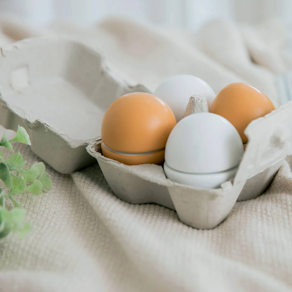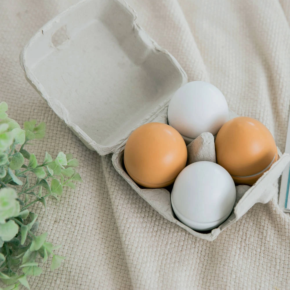 Doos met 4 eieren, bijna niet van echt te onderscheiden. Spelen met deze houten eieren is zowel leuk als leerzaam en bevordert de creativiteit van kinderen. Snijden, bakken, koken en aan tafel! De potjes, pannetjes, snijsetjes en keukentjes zijn absolute musthaves voor kleine keukenprinsjes en -prinsesjes.