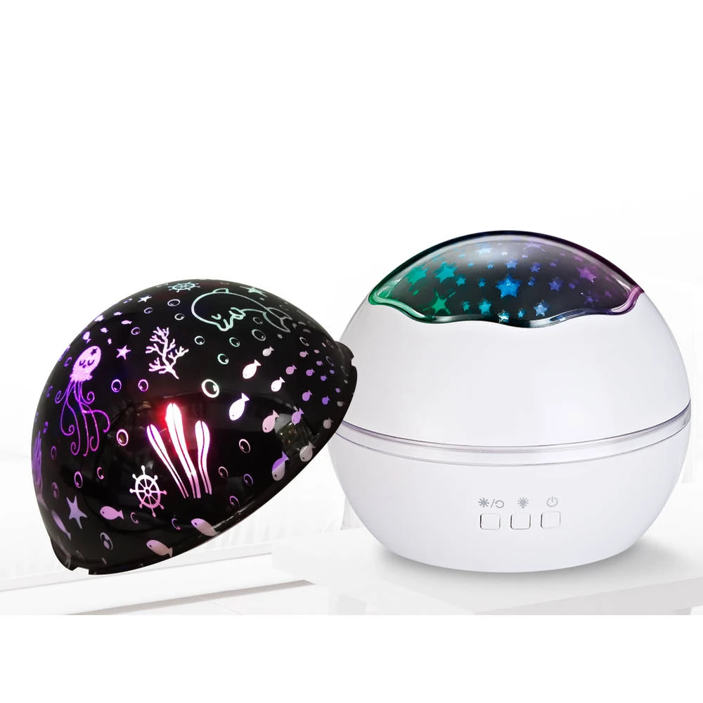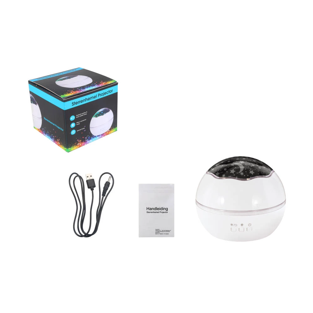 De kamer ziet er meteen sfeervol uit met deze te gekke projectorlamp. Het gebruik van deze projectorlamp is heel eenvoudig en projecteert leuke, kleurrijke zeewezens op de muur of plafond. Herken je de octopus, dolfijn en andere zeedieren? Je kunt ook kiezen voor een prachtige sterrenhemel. Deze mooie, lamp heeft een witte kleur en geeft helder licht.