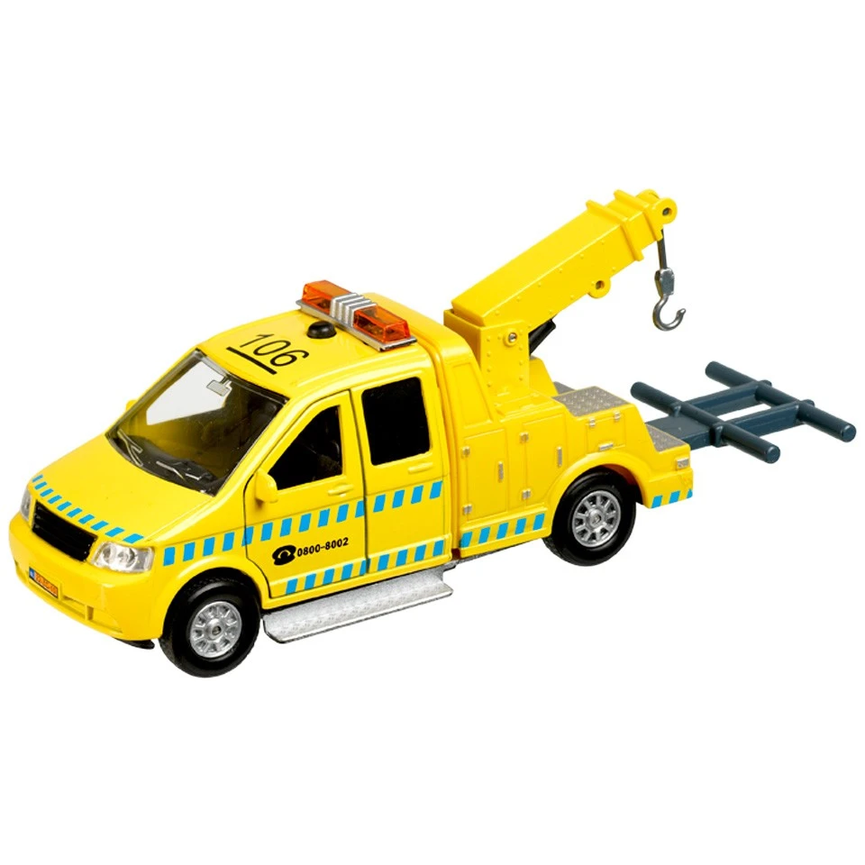 Pech onderweg? Dat is geen probleem! Deze sleepwagen brengt je auto zo naar de garage. Door zijn felle gele kleur zie je hem al van ver aankomen!