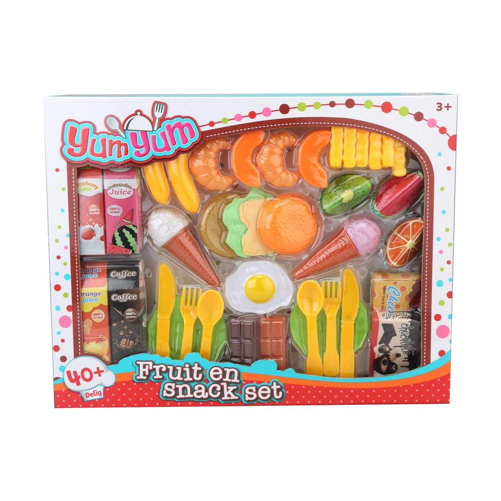 - Breid je keuken uit met deze set met speelgoedfruit en snacks.