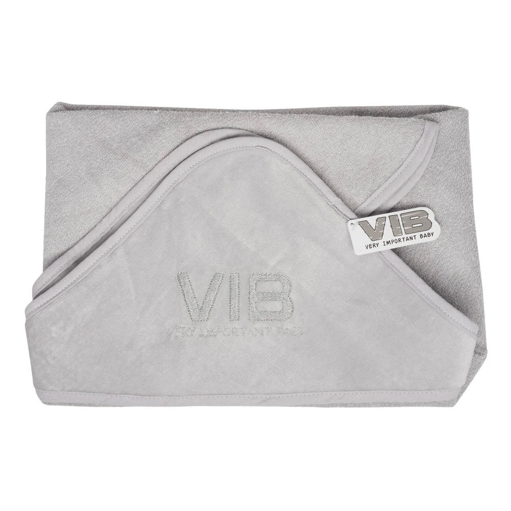 Deze grijs-zilveren VIB badcape kun je om je baby heen wikkelen voor een extra warme laag zodat de kleine VIP goed op temperatuur blijft.