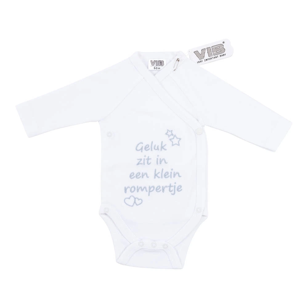 Met dit mooie VIB geluk zit in een klein rompertje maak je elke kersverse mama blij. Makkelijk aan en uit te trekken.