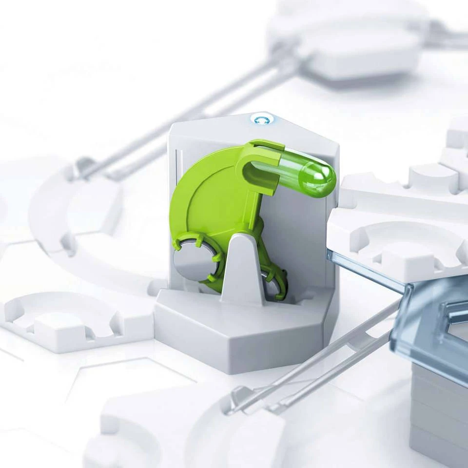 Handsfree genieten van een kogelbaanavontuur kan met deze GraviTrax Power Lever set. Breng kogels 4 wel niveaus omhoog.