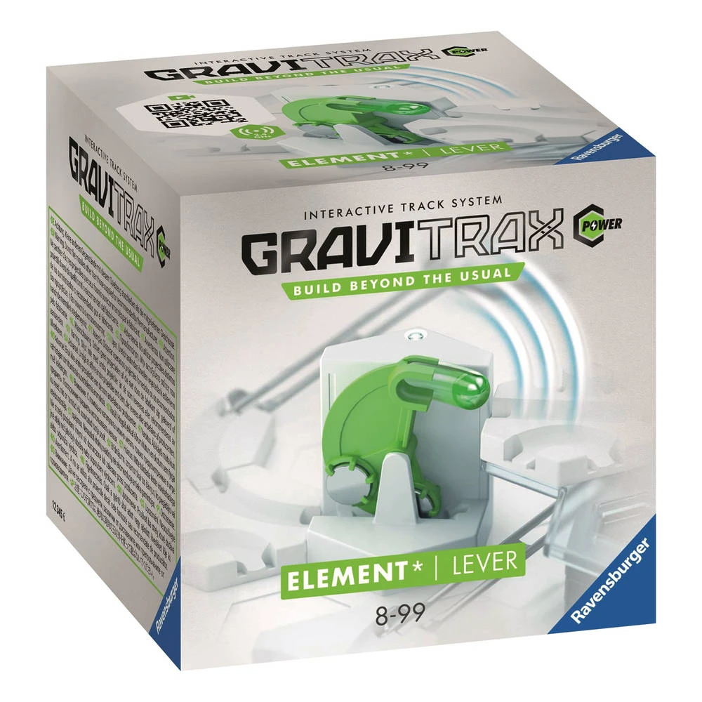 Met de GraviTrax Power Lever set geef je je kogelbaan een coole lift. Je hebt namelijk een nieuwe manier om je kogels 4 niveaus omhoog te brengen. Bovendien besluit je zelf hoe je de gemotoriseerde versie van de GraviTrax Scoop programmeert.