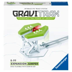 Breid je Ravensburger GraviTrax starterset uit met de Jumper om jouw kogelbaanwereld compleet te maken. Je kunt met de Jumper kogels naar een hoger level tillen en tegelijkertijd een doorgangstunnel creëren. Met de diverse bouwelementen maak je een parcours vol actie. De kogels breng je met behulp van magnetisme, kinetica en zwaartekracht naar de finish.