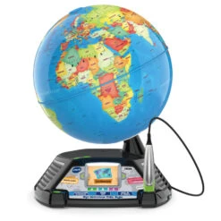 Leerzaam en interessant is deze VTech videoglobe. Een interactieve wereldbol met kleuren LCD-scherm die meer dan 5 uur aan videomateriaal van de BBC bevat. Maak onder andere kennis met de landen, vlaggen, hoofdsteden, valuta en talen van elk land. Ontdek welke dieren er overal leven en welke bijzondere bezienswaardigheden er allemaal zijn. Bevat 600 video’s, meer dan 200 vragen en meer dan 3000 weetjes via audio- en videofragmenten. Speel drie uitdagende spellen en wordt een echte globetrotter!
